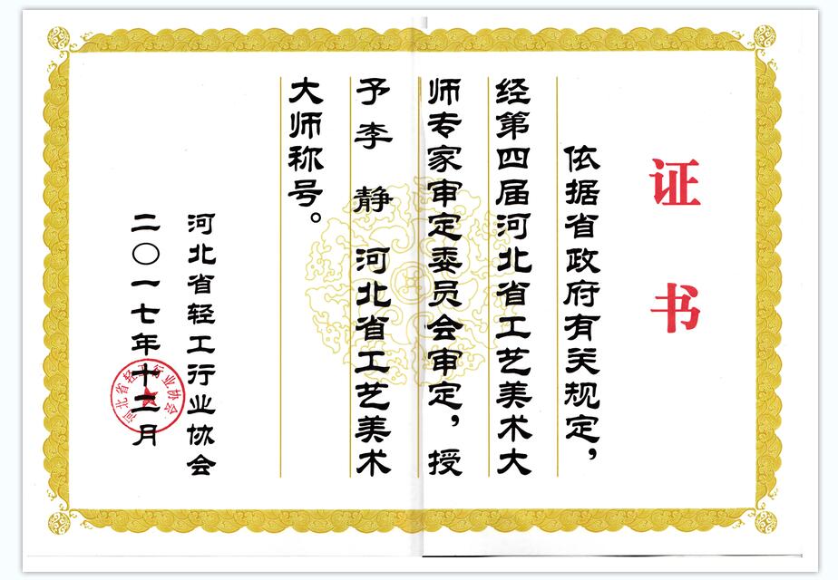 祝賀久藝園林藝術(shù)總監(jiān)李靜授予河北省工藝美術(shù)大師稱號(hào)。