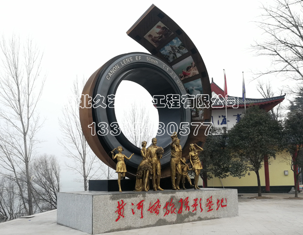 河北久藝園林為河南三門(mén)峽制作的攝影人物銅雕安裝完成。